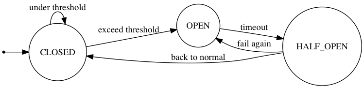 Circuit breakers can be seen as state machines. They can automatically detect failures and determine when they're restored by continuously updating access success and failure events.