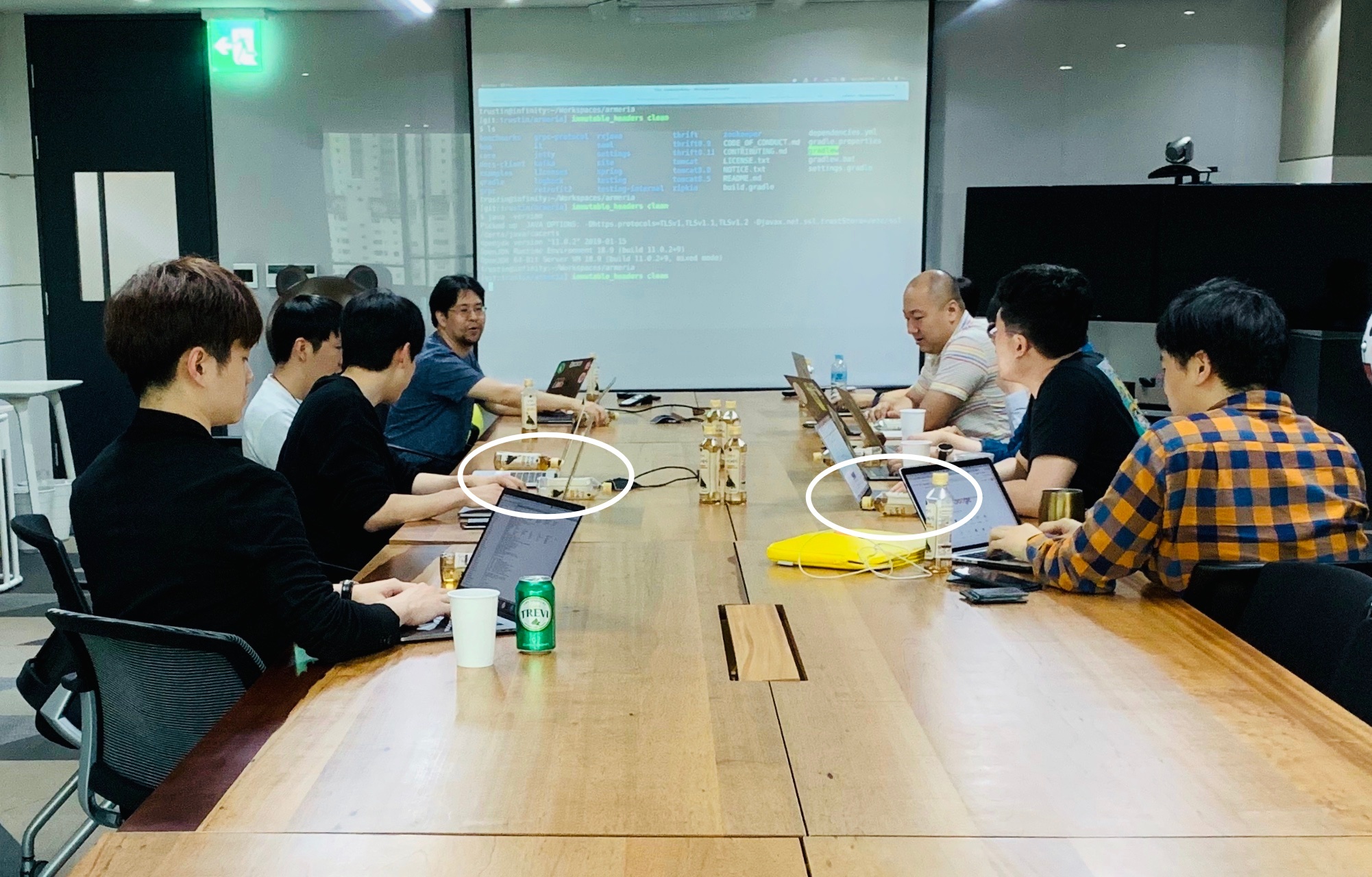 This year's Armeria Sprint was open to LINE developers only. We opened up only a few seats to achieve the optimum ratio of mentors to mentees. Quite surprisingly, these seats were filled up in a flash with more applicants on the waiting list! This alone testified to fully charged passion of all applicants. What an enthusiasm! The Armeria Sprint was scheduled for two days: two hours of welcome session on the first day and four hours of development sprint on the second day.