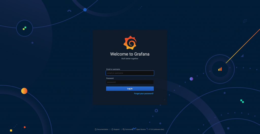 Grafana uses the 3000 port by default. Navigate to http://localhost:3000 on your browser and you will see the login screen shown below.